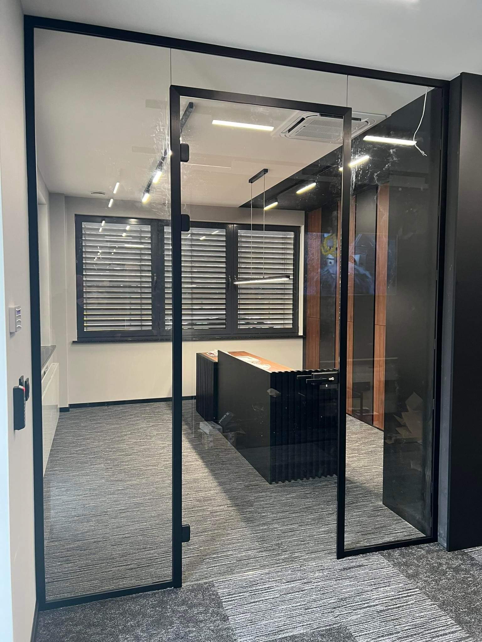 For a more sophisticated option, our double-glazing system features multiple profiles and independent installation of two glass layers, often incorporating VSG glass with acoustic foil. With remarkable sound insulation of up to Rw=47 dB, these solutions are perfectly suited for office buildings. Choose from an array of finishes, including a silver anode, INOX anode, and even raw aluminum. For a sleek and contemporary black finish, explore our BLACK SERIES. Indulge in the seamless blend of functionality and aesthetics with our exceptional glass solutions for office spaces.